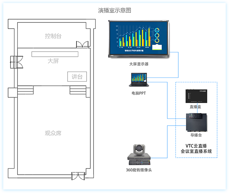 固定场地:对接现有或全新会议室系统,微信操控录制、直播。