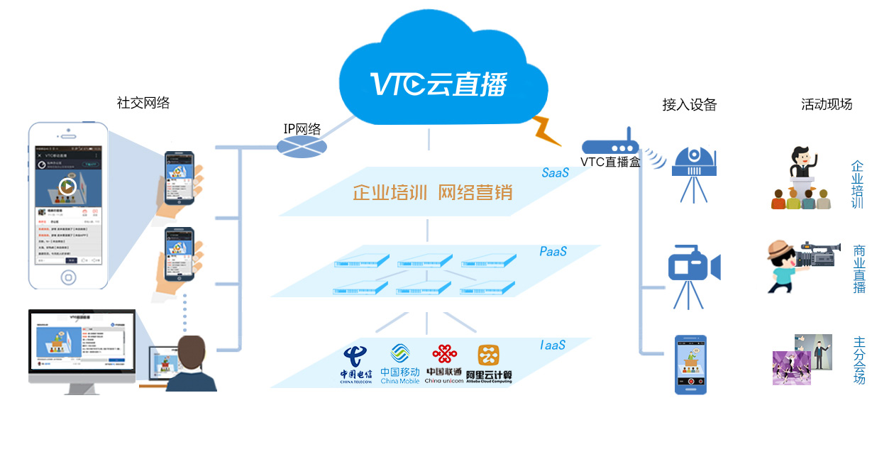 为商务会议、企业培训、活动营销等行业客户提供录直播、内容管理、社交互动、渠道分发